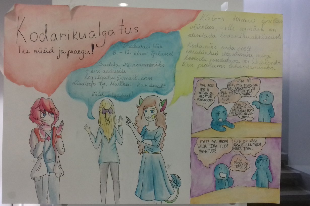 Oled oodatud osalema KSG kodanikualgatuste võistlusel! Mõtle välja, kuidas soovid panustada koolielu või kodupaiga paremaks muutmisesse. Leia sõbrad, kellega ettevõtmine ladusamalt läheks ning osale võistlusel!