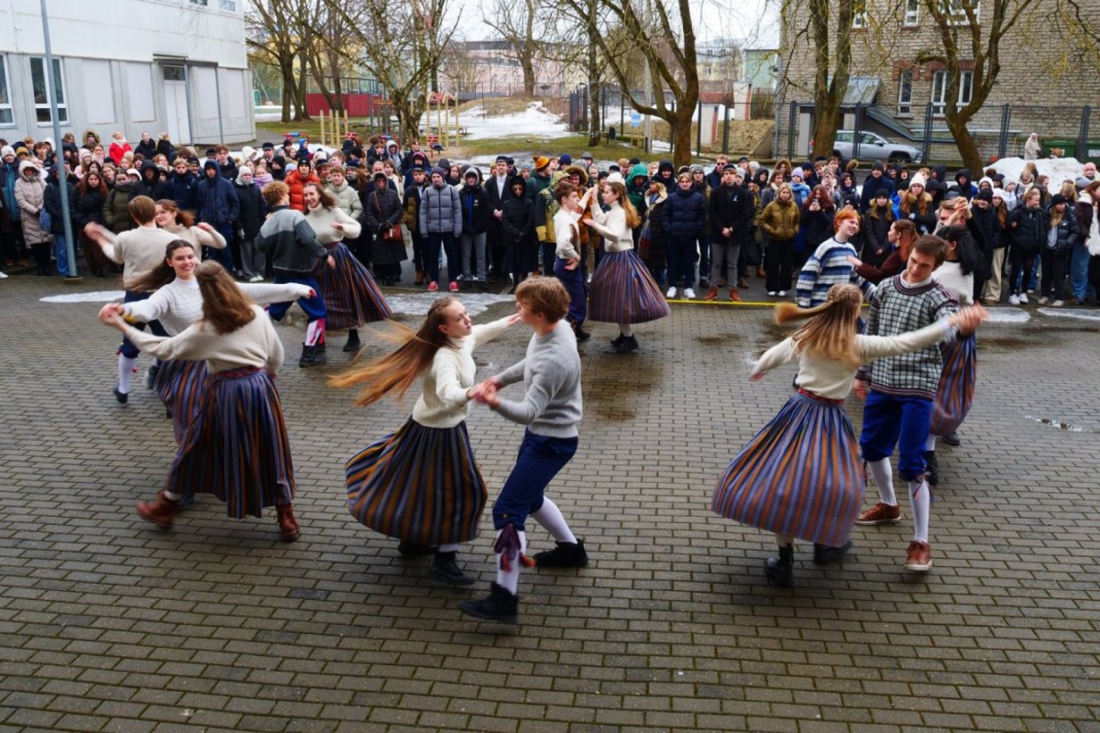 Külalisesinejaks oli meie kooli vilistlane ja välisluureameti juht, Kaupo Rosin! Luuletust olid esitamas meie Mäe maja 1.D klassi õpilased. Kõnelemas olid ka meie 11. klassi õpilane ja direktor. Tantsusammudega tegid aktuse soojaks meie külalised - Tantsuansambel Lee! Suure panuse andis ka meie liputoimkond, kes juhatas aktuse sisse ja ka selle lõpetas.