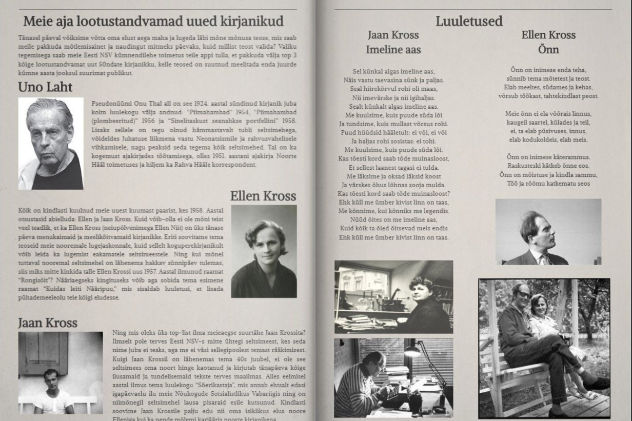 12. klassi õpilased lõpetasid eesti keele ja kirjanduse, ajaloo ja ühiskonnaõpetuse kursused loomingulise ühisarvestusega, mille eesmärk oli loovas vormis anda ülevaade 20. sajandi erinevatest kümnenditest. Tööd kajastavad perioodile iseloomulike väärtuseid, olulisemaid sündmusi ja näitavad ühiskondlike protsesside mõju üksikisikule, kirjanduse poolelt toetutakse ajastuomasele luulele. Töid iseloomustavad õpilaste piiritu fantaasia ja samas kümnendite vaimu hea tunnetamine.